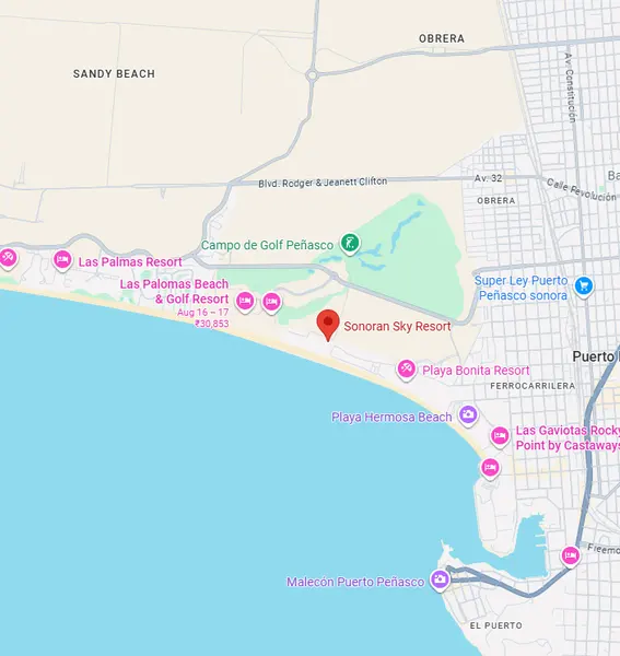 Located on Sandy Beach in Rocky Point, Mexico—just 1 hour south of the U.S. border, we’re open year-round and proud to offer top-rated amenities. Enjoy our full-service restaurant, fitness center, business center, free Wi-Fi, grocery store with pharmacy, and 5-star spa services. Relax in one of our 3 pools (one heated in winter), poolside bar, and 2 Jacuzzis (one adults-only).